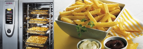 200 raciones de patatas fritas en sólo 15 minutos sin adición de grasa o aceite. El CombiFry® patentado de RATIONAL es el primer accesorio que permite preparar grandes cantidades de productos prefritos, eliminando así completamente los costos para compra, almacenaje y eliminación de aceite. |
